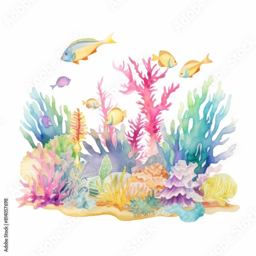 A beautiful watercolor illustration of a coral reef