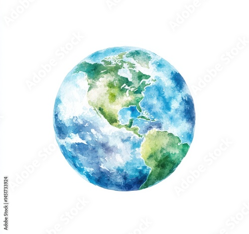 A beautiful watercolor painting depicting the earth on a clean white background