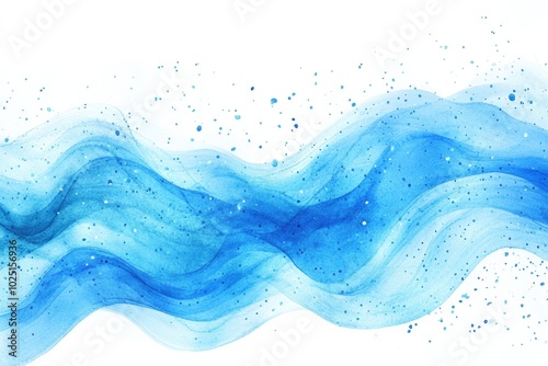 A beautiful watercolor painting of a blue wave on a white background, perfect for use in designs related to calmness, serenity, and ocean-inspired themes