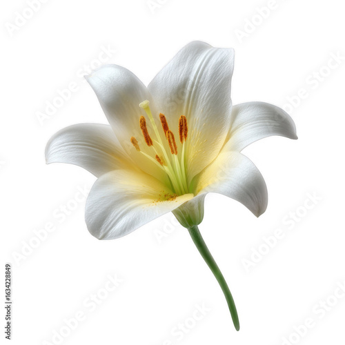 A beautiful white lily flower with delicate petals and vibrant stamens, isolated on a black background. Perfect for use in floral arrangements and nature-themed designs.