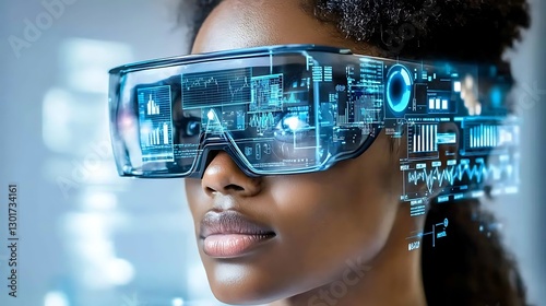 A Beautiful Woman Wearing High Tech Augmented Reality Glasses