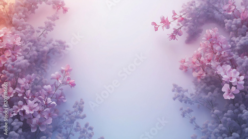 A beautiful Women's Day background featuring delicate pink and purple flowers arranged around the edges, leaving a central blank space for text.