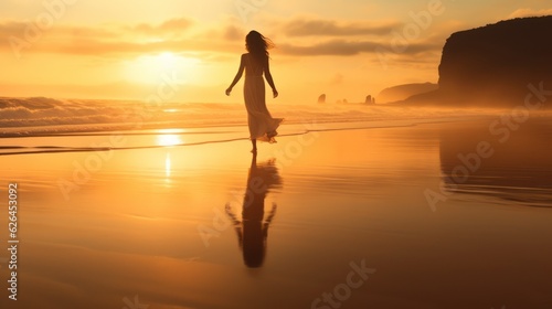 A beautiful young pretty girl walking outdoors at the beach. Generative Ai