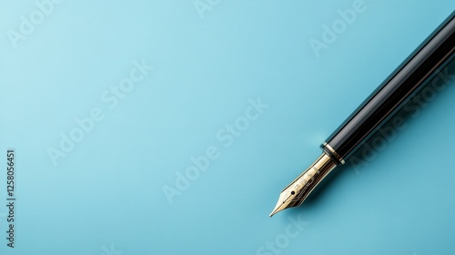 A beautifully crafted fountain pen resting elegantly on a soft blue background, conveying sophistication and the joy of writing, ideal for creatives and professionals.