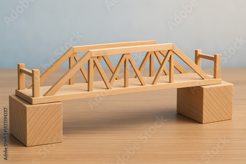 A beautifully crafted wooden bridge model showcasing intricate design and engineering principles, ideal for educational purposes or as a decorative element in various settings.