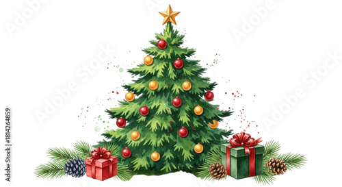 A beautifully decorated christmas tree with ornaments and gifts