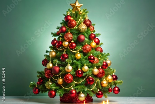 A beautifully decorated christmas tree with red and gold ornaments and a golden star on top