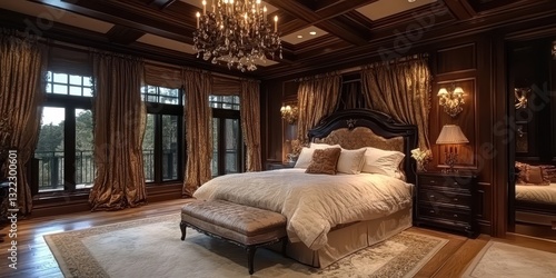 A beautifully decorated luxury bedroom showcases opulence and elegance in detail