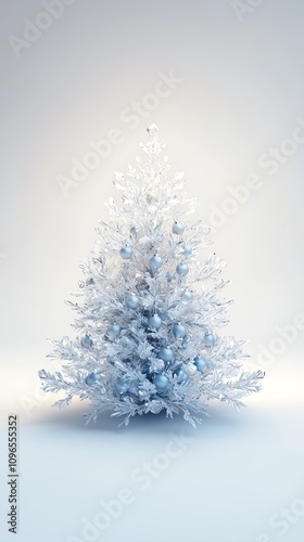 A beautifully decorated snowy Christmas tree with shimmering lights and ornaments.