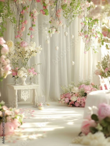 A beautifully decorated space with floral arrangements and soft lighting, ideal for events.
