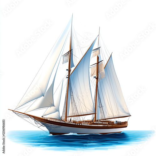 A beautifully designed sailboat with white sails gliding over calm waters, evoking feelings of adventure and tranquility.