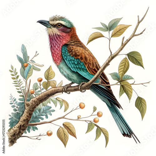 a beautifully illustrated bird perched on a branch