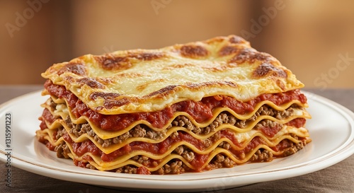 A beautifully layered lasagna with rich tomato sauce, melted cheese, and layers of tender pasta sheets