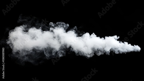 A beautifully shaped white smoke plume swirling in various directions, isolated against a solid black background