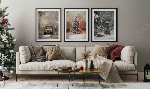A beautifully styled living room captures the essence of the New Year's holiday with two decorative picture frames
