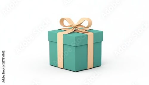 A beautifully wrapped turquoise gift box with a beige ribbon, set against a plain white background