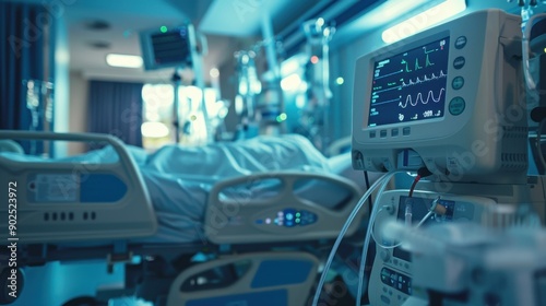 a bedridden patient in the intensive care unit is connected to a life support machine.