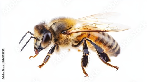 A bee is standing on a white background