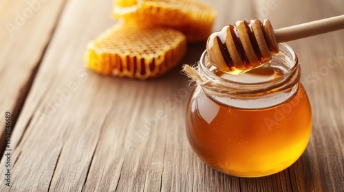 A beekeeper harvesting golden honey from wooden hives collecting sweet nectar in jars using wooden tools and showcasing natures delicious bounty
