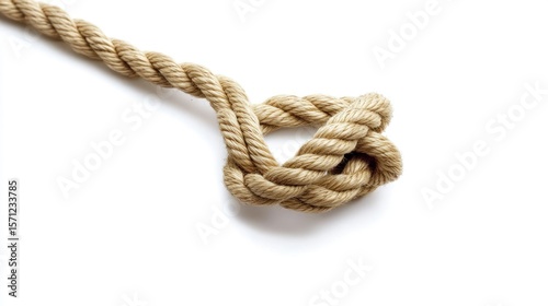 A beige rope with a simple knot tied in it, against a white background. The knot is a key focus of the image