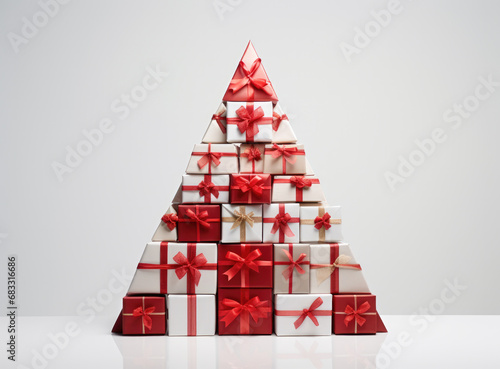 A big pile of gifts in the form of a Christmas tree, new year's Eve