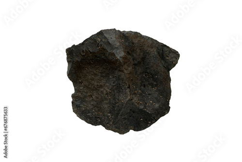 A big raw porous basalt rock stone isolated on white background.