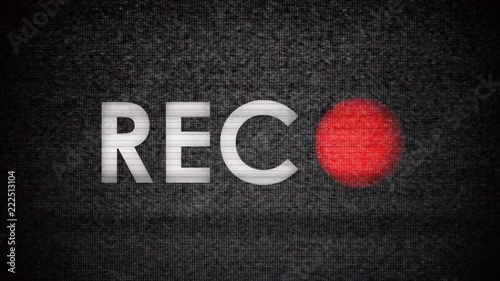 A big white REC text with a big red dot (recording message from a camera's viewfinder) with the noise and distortion of an old CRT TV.