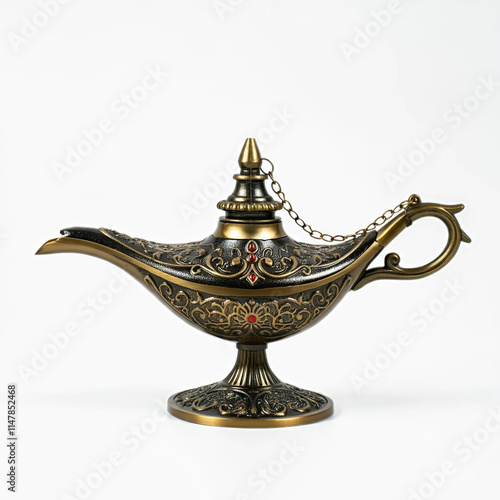 A black Aladdin's lamp on isolated background.