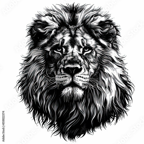 A black and white drawing of a lion