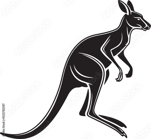 A black and white kangaroo silhouette in vector style, set against a clean white background