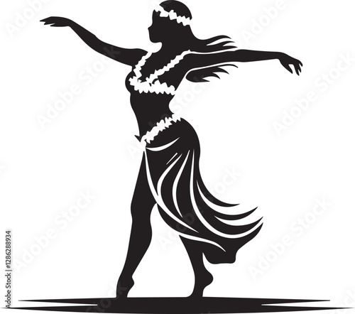 A black and white logo type Hula Dancer silhouette design - Traditional Hawaiian Dance silhouette design