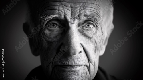 A black and white portrait of an elderly person with deep wrinkles, symbolizing life experience.