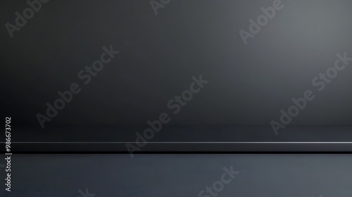 A black, empty shelf or platform with a slight gradient background, perfect for showcasing products or designs.