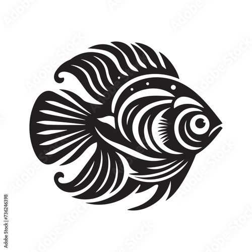 a black flat silhouette fish and white background. fish, sea, vector, animal, water