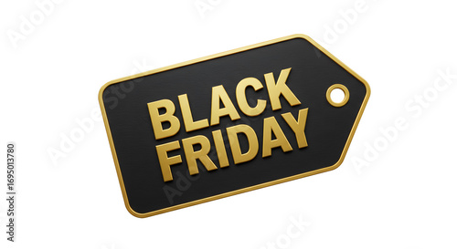 A Black Friday sale tag with a gold border is on display. It highlights special deals and offers during this festive shopping event.