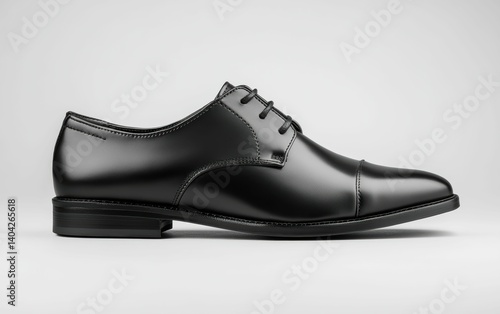 A black leather shoe with a sleek cap toe, crafted for sophistication and ideal for professional settings on a plain white background.