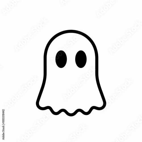 A black line illustration of a cartoonish ghost, featuring large eyes and a wavy bottom. This icon is perfect for Halloween-themed projects or spooky decorations