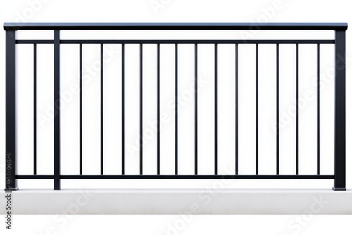 A black metal railing with vertical bars, providing safety and structure, set against a light background.