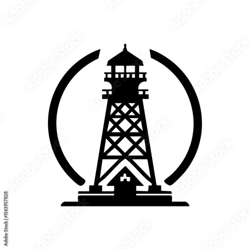 A black minimalist vector logo of a watchtower surrounded by curved signal arcs and a base resembling a medical facility, symbolizing protected communication or rescue.
