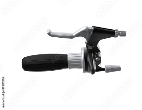 A black motorcycle or scooter throttle grip with a silver brake/clutch lever assembly, captured in high detail. This isolated vehicle part is presented on a PNG Transparent HD Background, perfect for