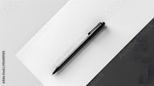A black pen lying on a white surface, ready to write.