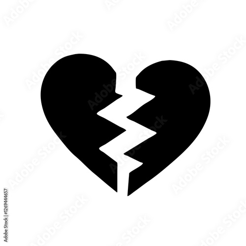 a black silhouette icon of a broken heart isolated on white, symbolizing heartbreak, divorce, separation