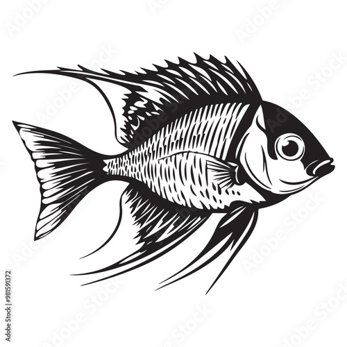 A black silhouette of a Angelfish vector clip art, Clipart Hand drawn cartoon graphic design icon
