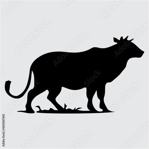 A black silhouette of a cow standing in a field silhouette
