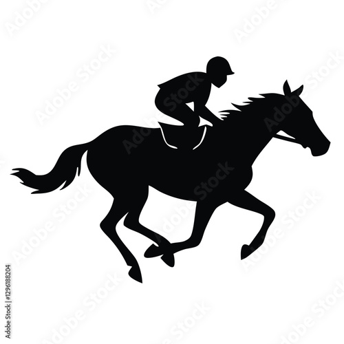 A black silhouette of a jockey riding a galloping horse, captured in mid-motion