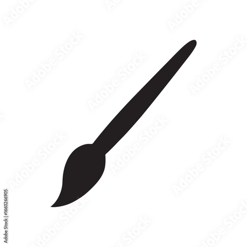 A black silhouette of a paintbrush with a long handle and soft bristles on a white background art tool.