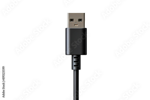 A Black USB Cable Connector Against a White Background on a Clear PNG or White Background.