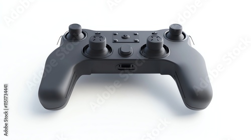 A black video game controller isolated on a white background.