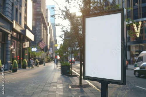 A blank billboard on the side of a city street with a plain white background and no advertising or messages