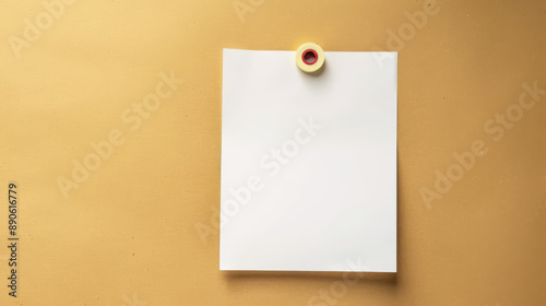 A blank piece of paper with tape on a business bulletin board, ready for important messages